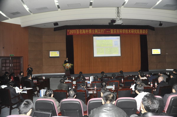 联合举办的“2011百名海外博士两江行”重科院恳谈对接会在院学术报告厅隆重举行。此次恳谈对接会是“2011百名海外博士两江行”重大活动之一,共邀请来自美国麻省理工、英国剑桥、美国IT金融集团、IBM研究院总部等高校、企业的100余名博士参加会议。院党委书记皮晓青,副院长贾渝跃、刘斌,纪委书记李雷霆,以及院组织人事处、科研管理处、新材料中心等相关处室、中心和院所的负责同志接待了来宾。海外博士一行实地考察和参观了院光机所、硅酸盐所、自动化所、技术评估与转移服务中心及科技成果展示厅,并参加了恳谈对接会。