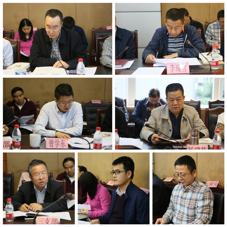 10月25日,何平书记在院301会议室主持召开院党委2019年第26次理论学习中心组(扩大)学习会。党委副书记、院长梁震出席会议,党委委员刘斌、李瑞雪、曾学东、龚亮、杨建华,院属各单位党政主要负责人和机关各党支部书记、各处室(中心)主要负责人参会。会议学习了《习近平谈治国理政(第二卷)》中关于守纪律讲规矩、形成国家监察体系、强化巡视监督、落实党内监督责任等内容,学习了中国共产党问责条例,学习了习近平总书记关于监督执纪问责、国家监察体系建设的重要讲话精神。刘斌、杨建华、刘万伟等3位同志中心发言,曾学东等3位同志即席发言。