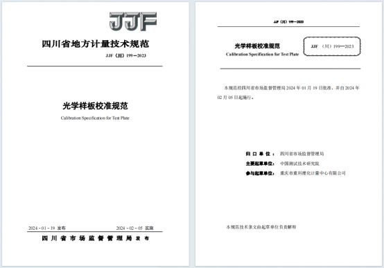 近日,参与起草的JJF(渝)091-2023《圆锥螺纹量规校准规范》、JJF(川)199-2023《光学样板校准规范》、JJF(渝)095-2024《表面温度源校准规范》等地方规范陆续发布。其中《圆锥螺纹量规校准规范》为川渝地区提供了统一且科学可行的评价方法,以保证圆锥螺纹制造的工艺水平、测量精度,从而提高汽车、摩托车等各类机械的总成质量;《光学样板校准规范》的实施解决了以采用光学样板作为计量标准器的溯源问题,也可以为光学元件加工企业统一光学样板量值提供技术保障;《表面温度源校准规范》的实施为重庆地区各行业广泛使用的表面温度源校准提供了技术指南。