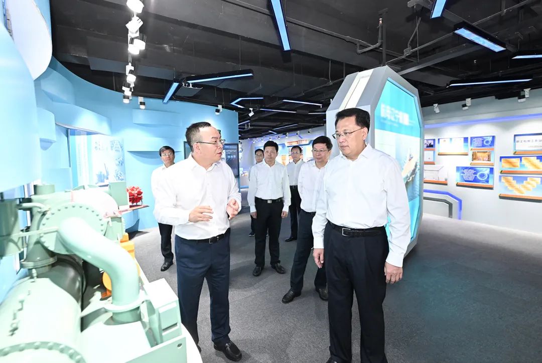 ▲7月2日上午,在重庆机电集团,市委书记袁家军,市委副书记、市长胡衡华听取集团改革进展汇报,观看产品展示。
