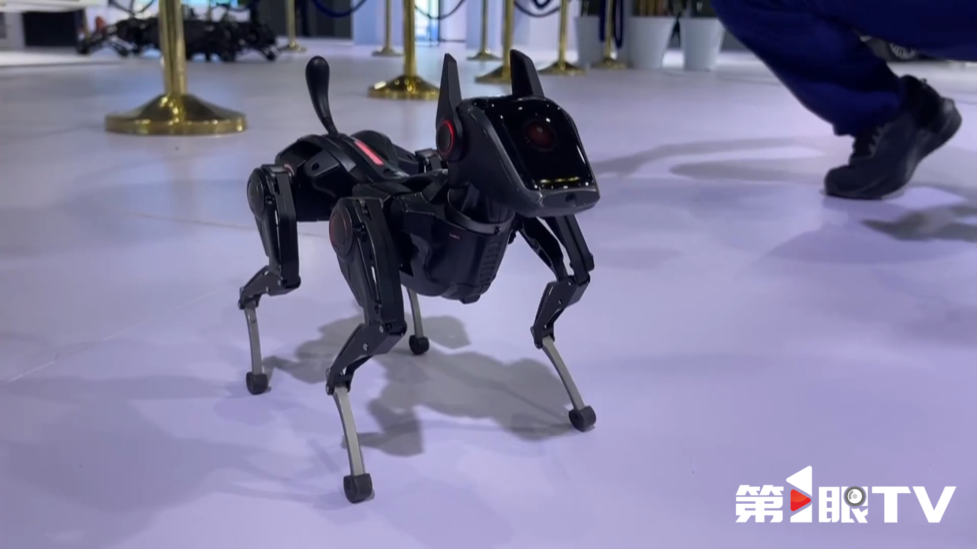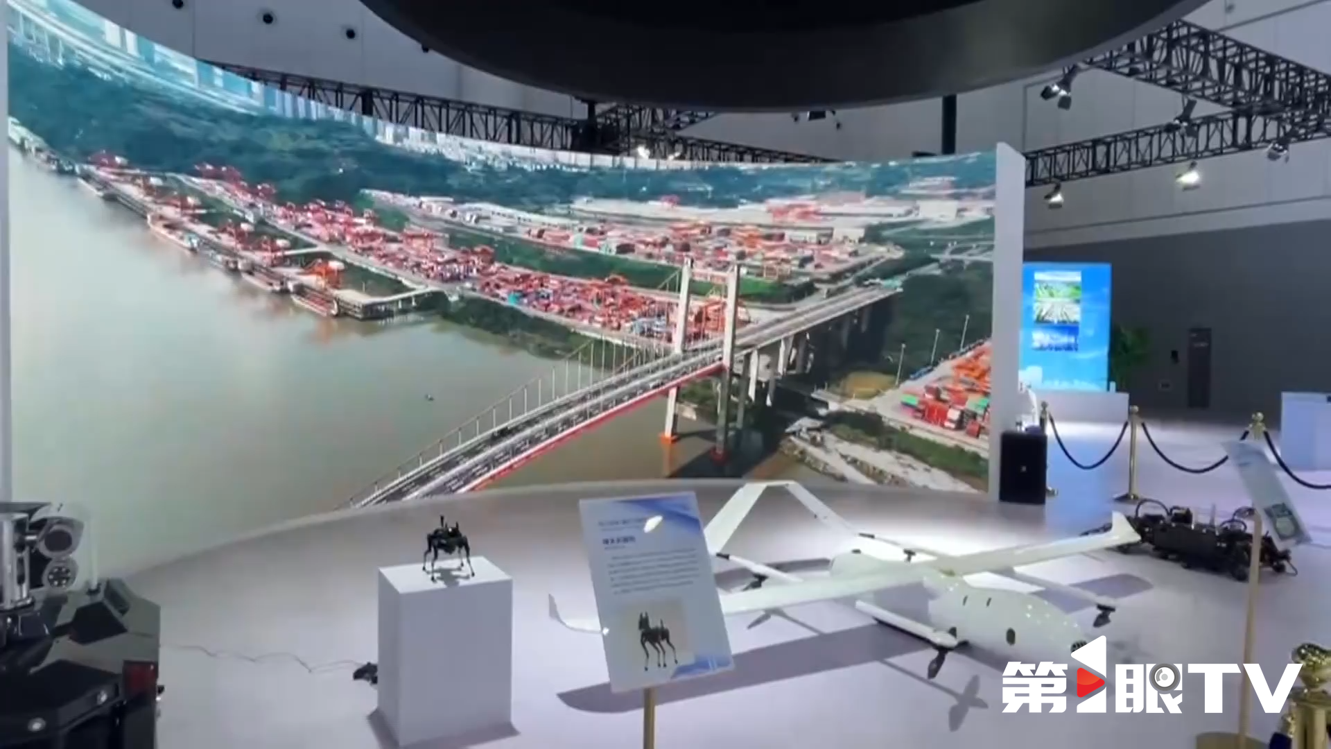 本届一带一路科技交流大会科技成果展主要包括四川厅廊道展区和西博城一号馆展区。重庆馆就位于西博城一号馆展区。网红机器狗啸天,来自重庆明月湖的一家科技企业。刚才记者抚摸了它的头,它表示特别的兴奋。